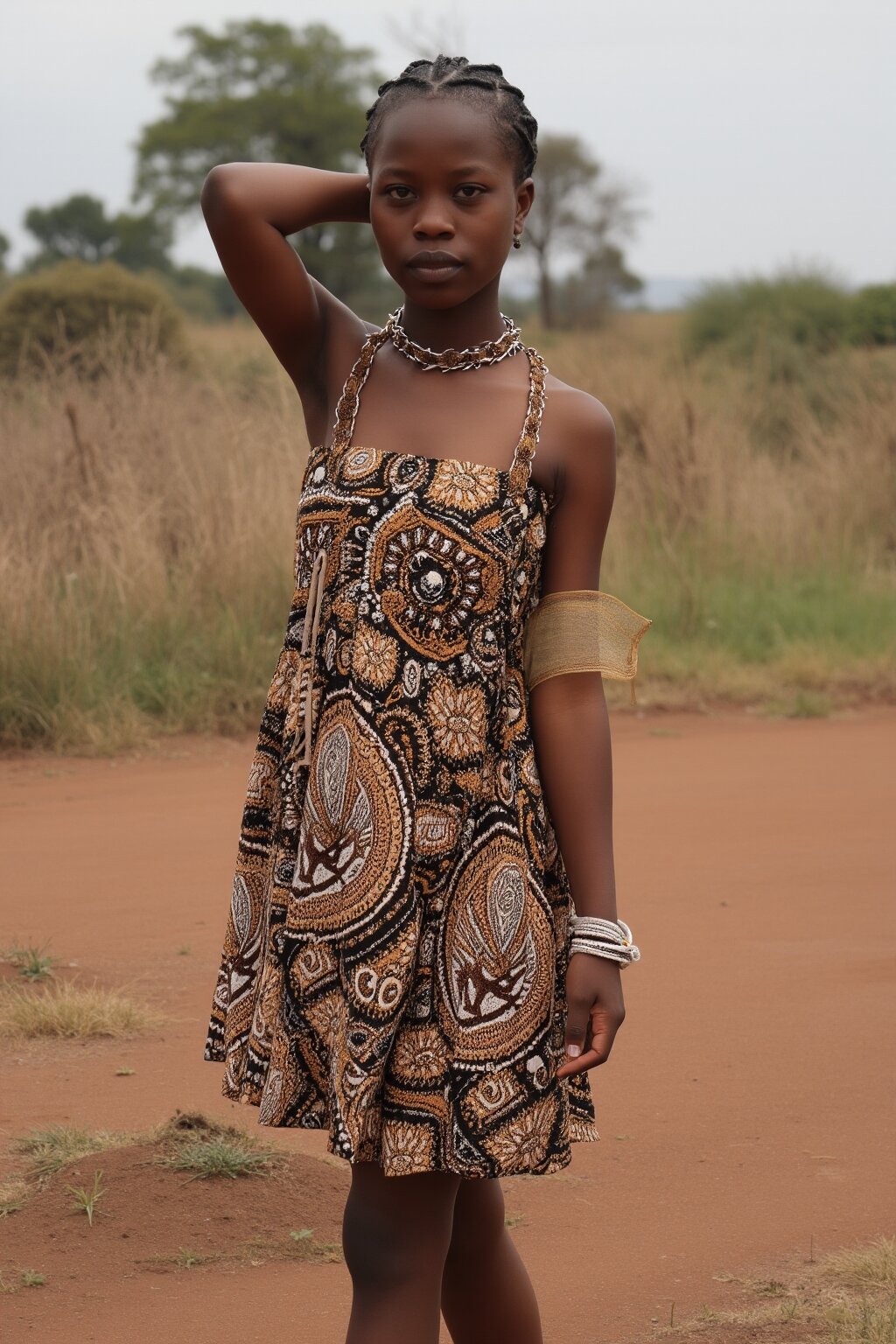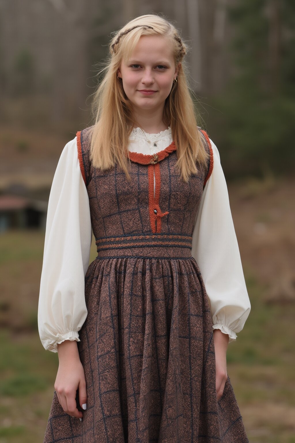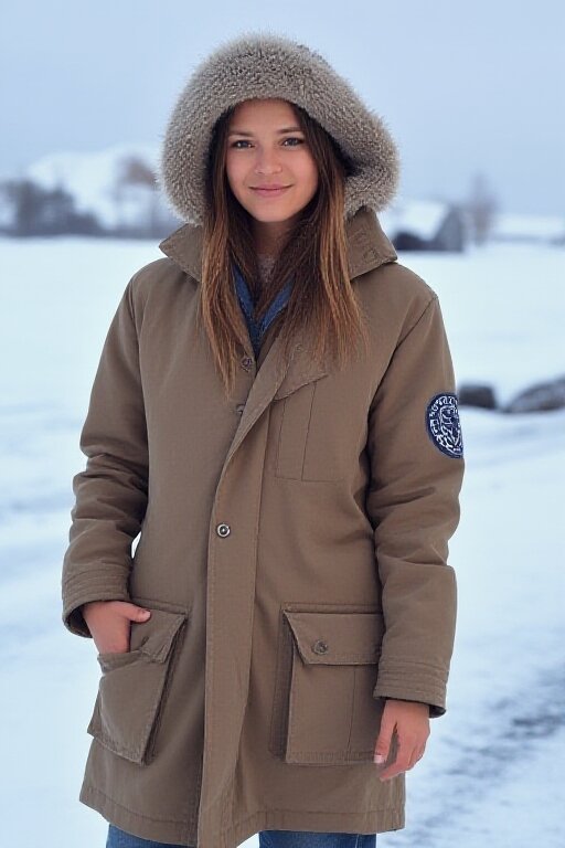 A photograph of a sexy American girl standing outdoors in American attire in an American setting.