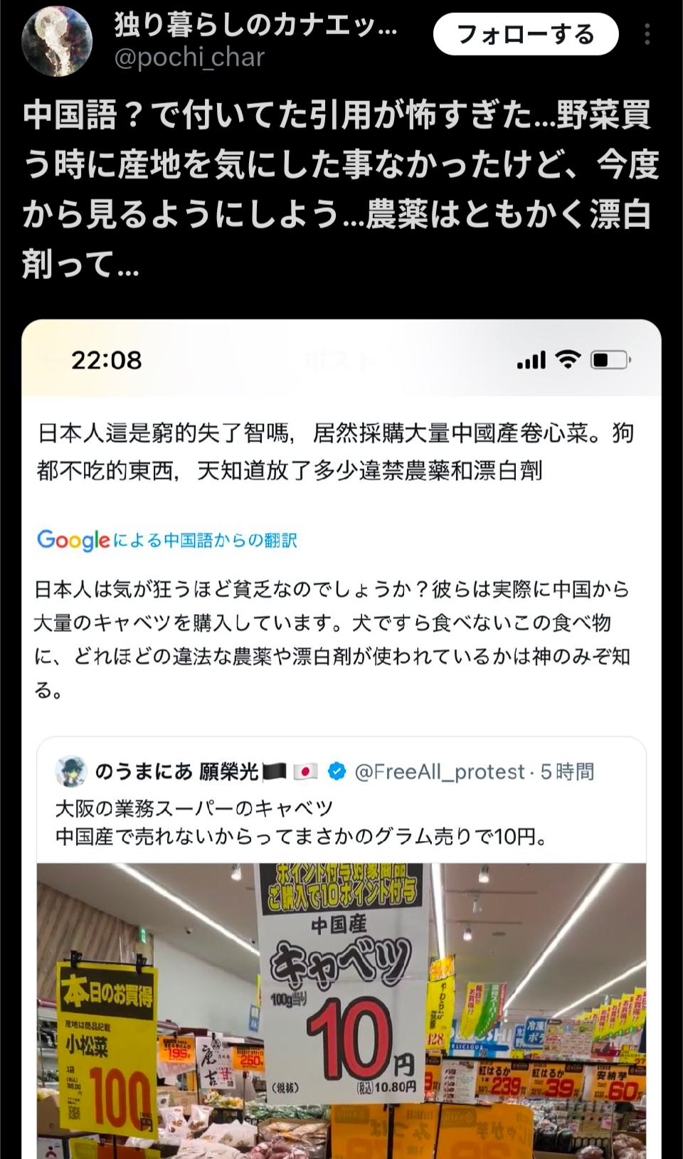 近所の格安スーパーは特売野菜に産地なんか書いてないわ