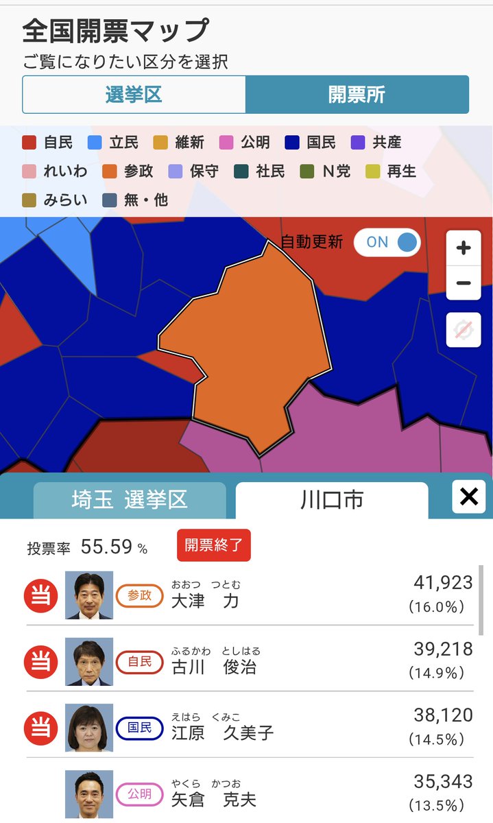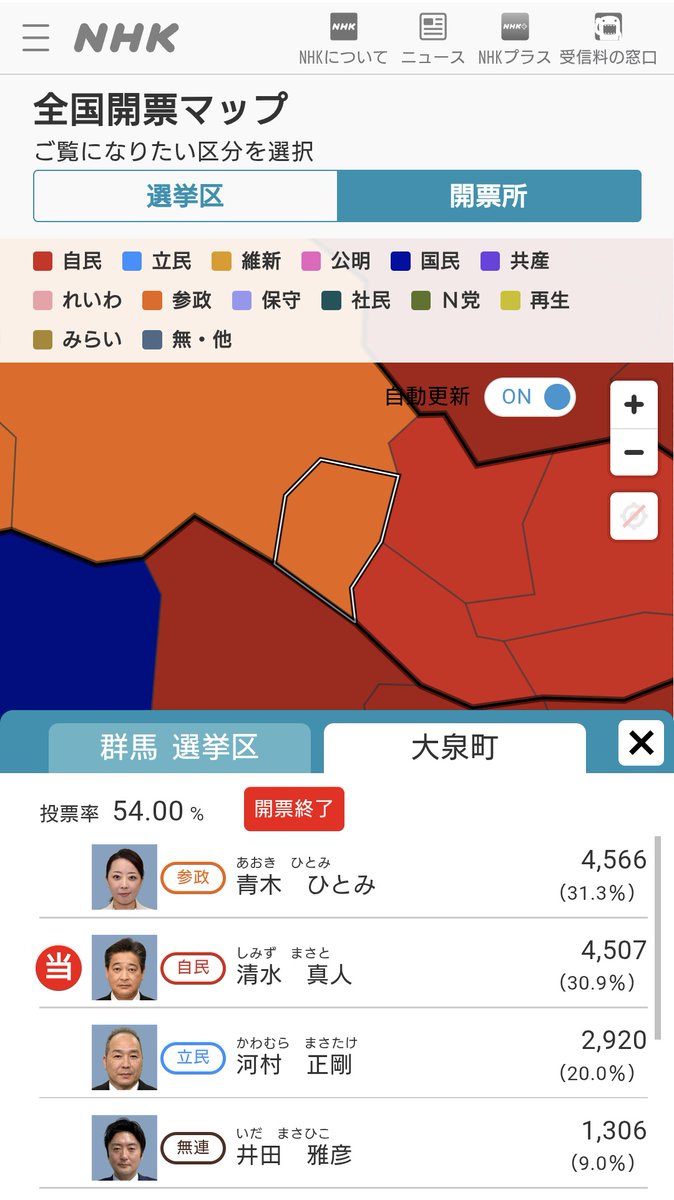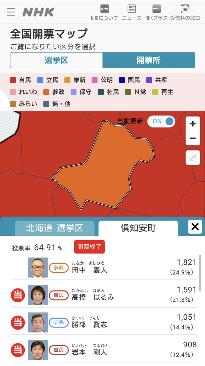 参政党がおかしいのは、その県の中でも特定の地区、もっといえば倶知安や川口みたいに自治体単体だけで異様に勝ってて、隣接地では泡沫だったりすること