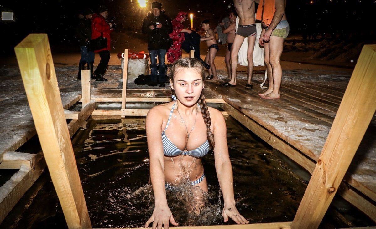【画像】正教会の洗礼祭、白人水着女子が真冬に水浴びwwww