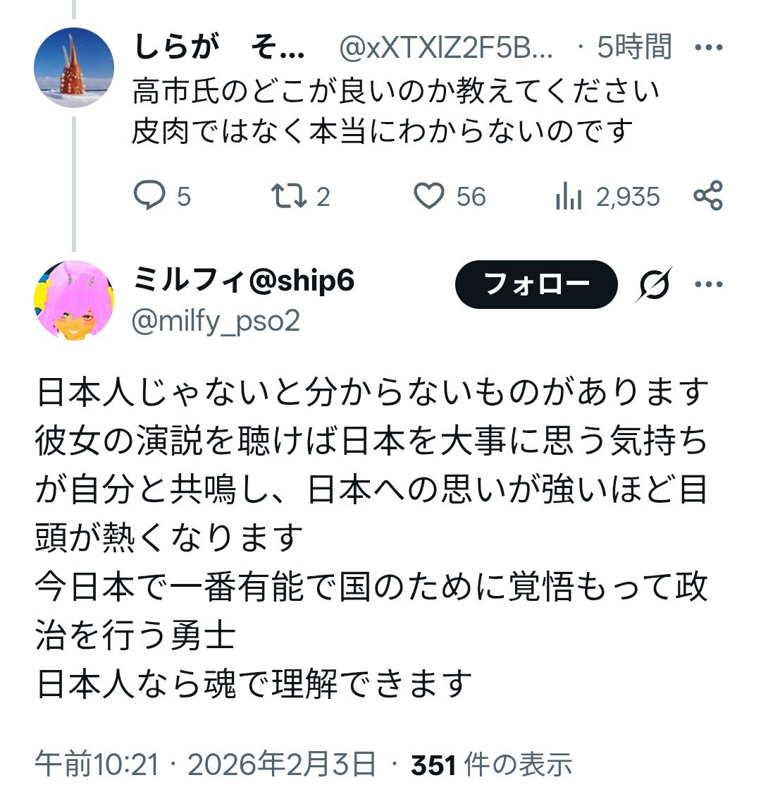 高市には好感しかないわ