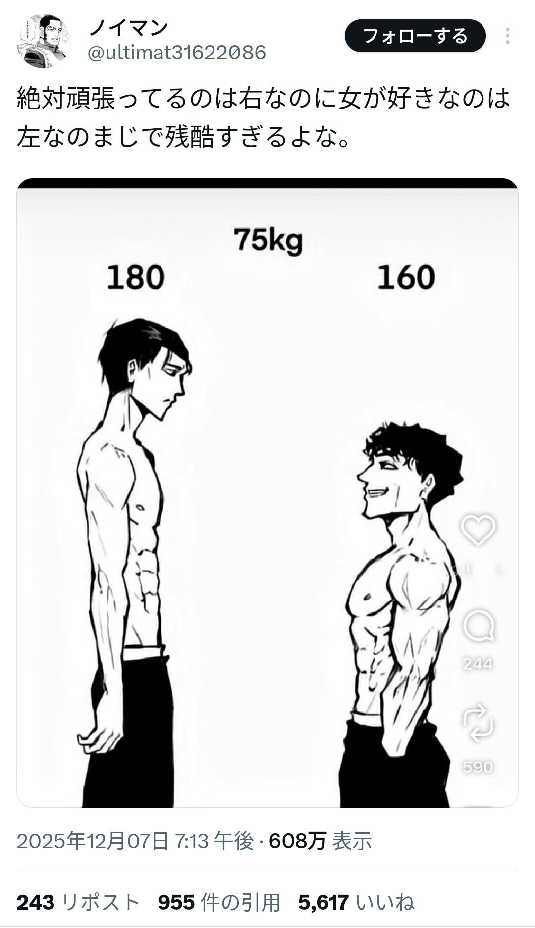 - 【画像】頑張ってるのは右なのに、女が好きなのは左なのはマジで残酷過ぎるよなw